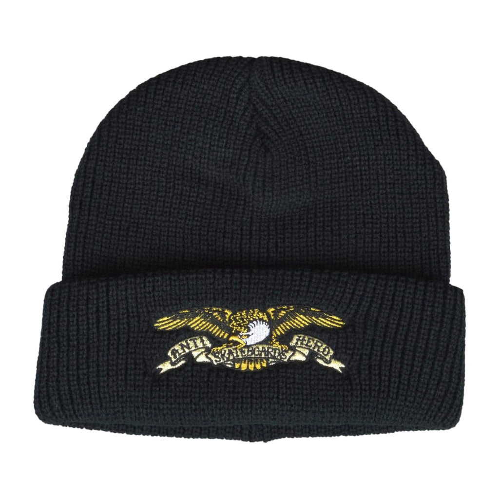 ANTI HERO EMBROIDERED CUFF BEANIE BLACK 【 アンタイヒーロー エンブロイダード カフ ビーニー ブラック 】