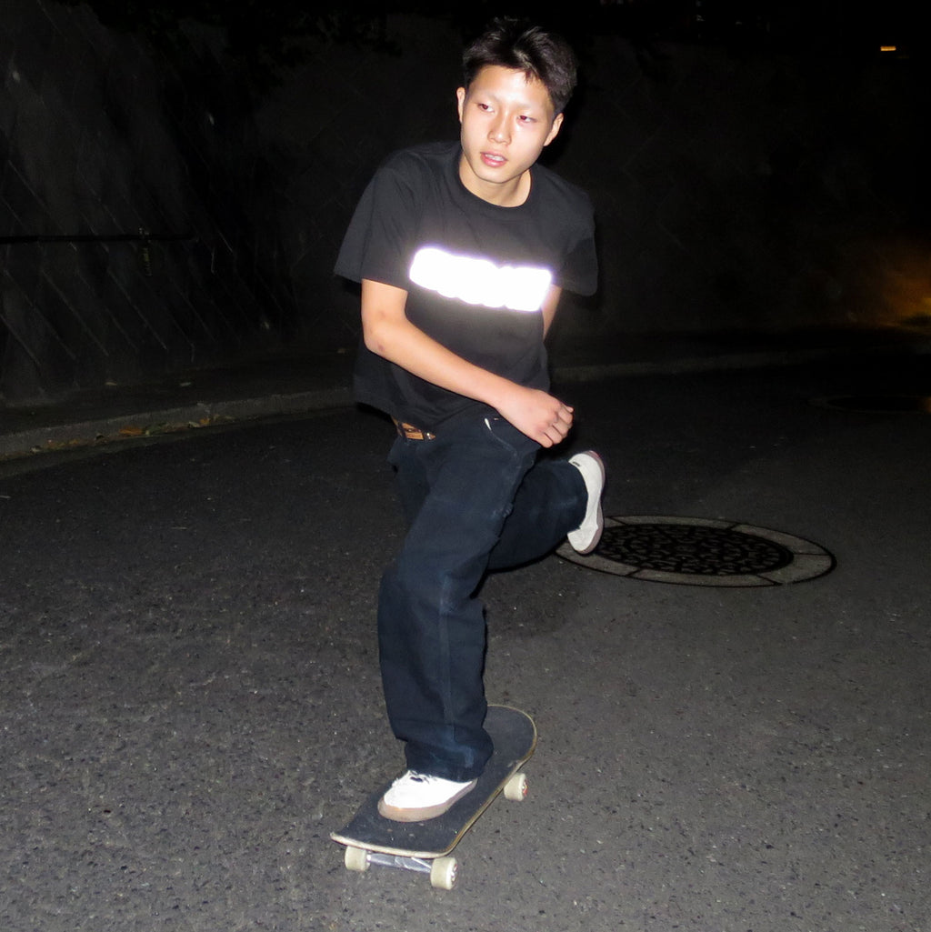 フロントのロゴには暗闇で反射する、リフレクトインク転写プリントを使用。