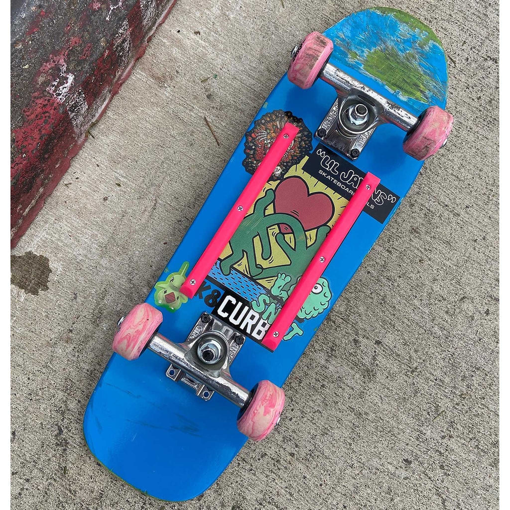 ダラスのスケートボードレール専門ブランド、リルジョーンズのアイテムは一般的な射出成形ではなく、強度の高いCNC削り出しの高品質。素材には超高分子樹脂を使用し、高いスライド性と耐久性を実現しています。
