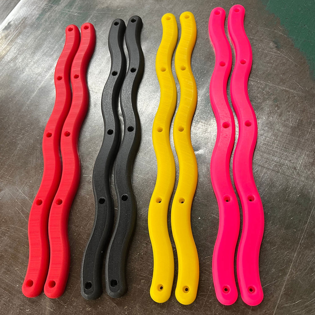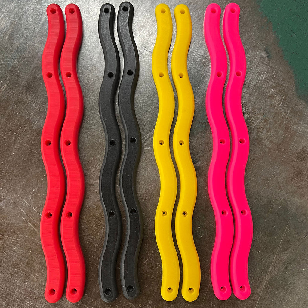 個性的なシェイプのWIGGLEモデル。幅3/4インチ、長さ14インチ、5穴パターン。丸みを帯びたエッジを採用。